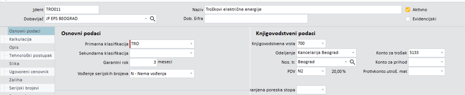 Za svaki dokument koji je unet u ERP sistem automatski predefinišemo: